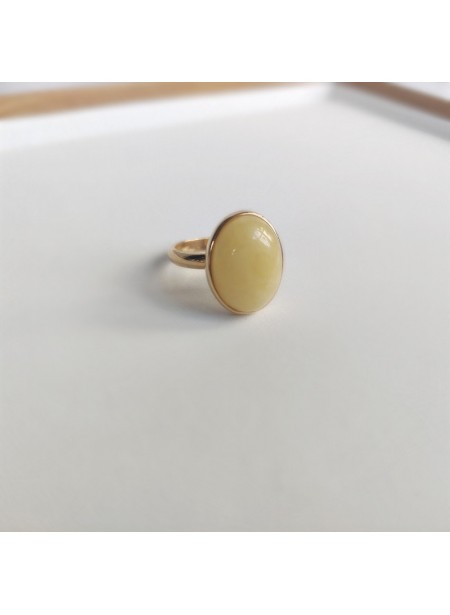 Milky White Baltic Amber Ring with Gold-plated Silver Pattern. Natural Egg Yolk Amber, Engagement Gold Amber Ring